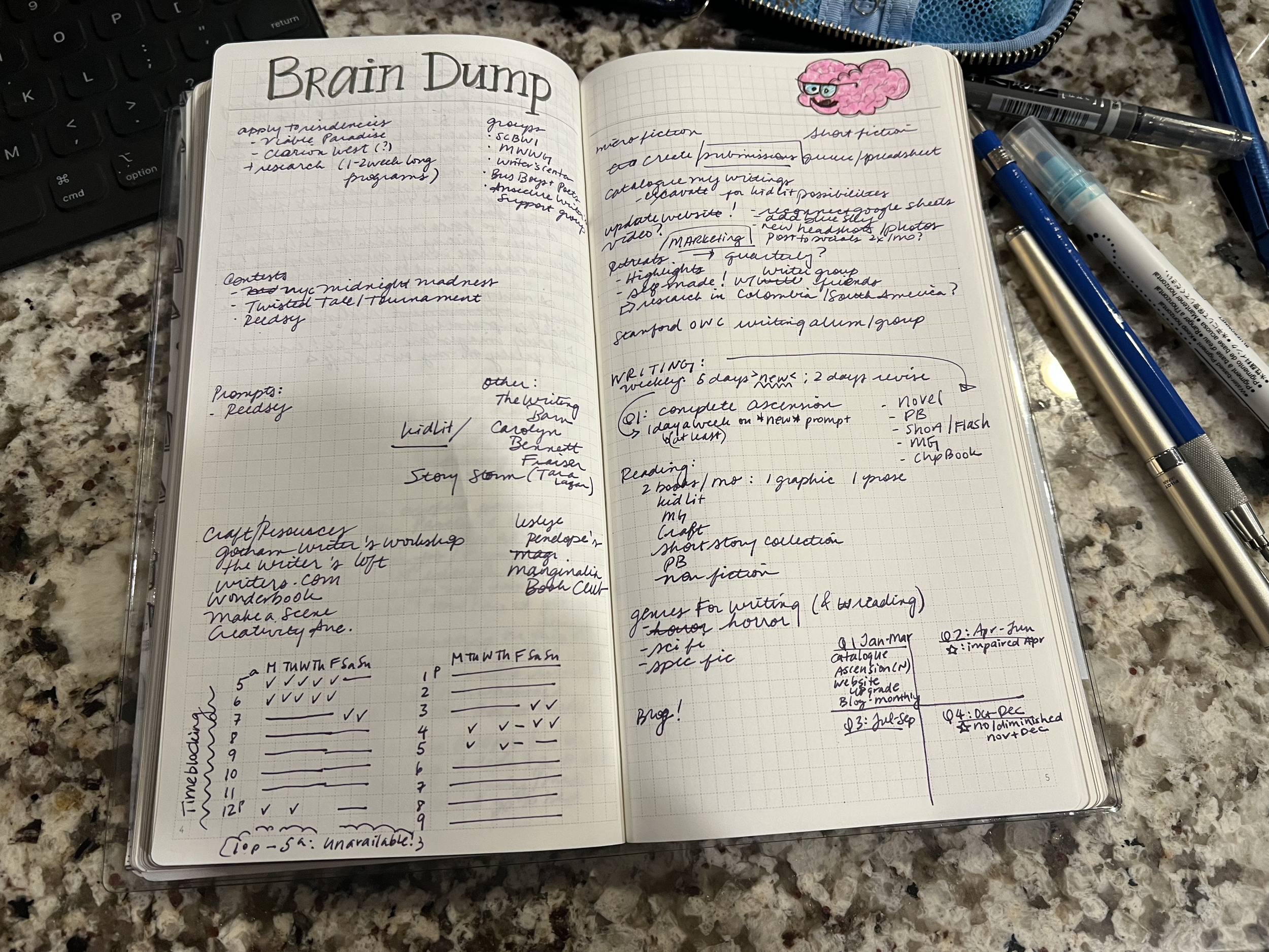 Brain Dump page in pencil pre-populated.